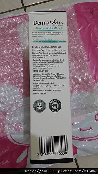 這款【DermaVeen得麥膚】燕麥全效舒緩潔膚露,是以天然燕麥芯精華 (Colloidal Oatmeal) 為主要成份的「燕麥全效舒緩肌膚調理系列」潔膚產品,結合了天然成份及護膚科技。仔細看了一下我拿到的燕麥全效舒緩潔膚露,它的英文是Shower and Bath Oil,起先看到Oil(油)覺得有點奇怪,直到看到使用前先搖勻的使用說明才愰然大悟。